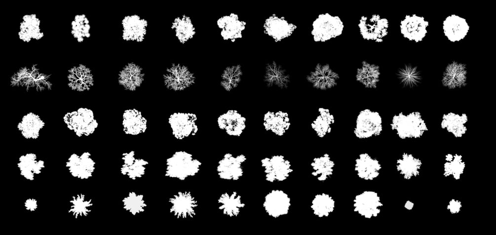 | 50 brushes & .png trees in plan ready to use with Adobe Photoshop